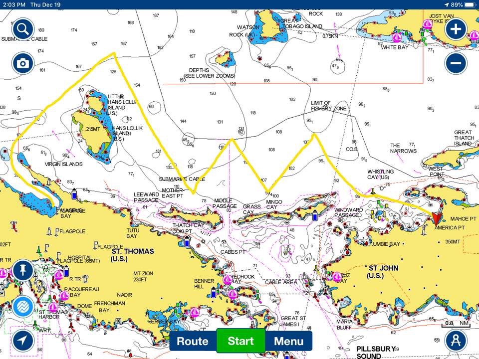 When we learned that SV Wilfull and SV Tanda Tula were spending one last night in St John before heading to the British Virgins, Capt. Mike and I raised anchor and hurried over to St John to see them one more time. Heading east means upwind, but we’re in no hurry, so we kept the motor off and enjoyed the sail tacking as close to the wind as our staysail would allow.