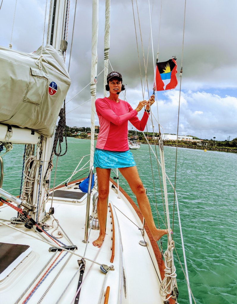 So….Capt. Mike and I made the decision to leave as soon as possible for Antigua, while borders were still open, even though the sailing conditions were less than ideal. But – we had another problem. With all non-essential businesses closed, we couldn’t clear out of Guadeloupe, and we didn’t know if Antigua would accept us without the proper paperwork. We spent all afternoon on the phone with Antigua customs and immigration until we found someone who could answer our question. Finally, at 5:30 pm, we were told “You can come”.