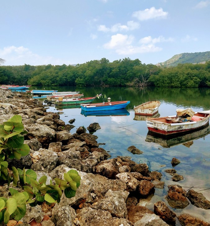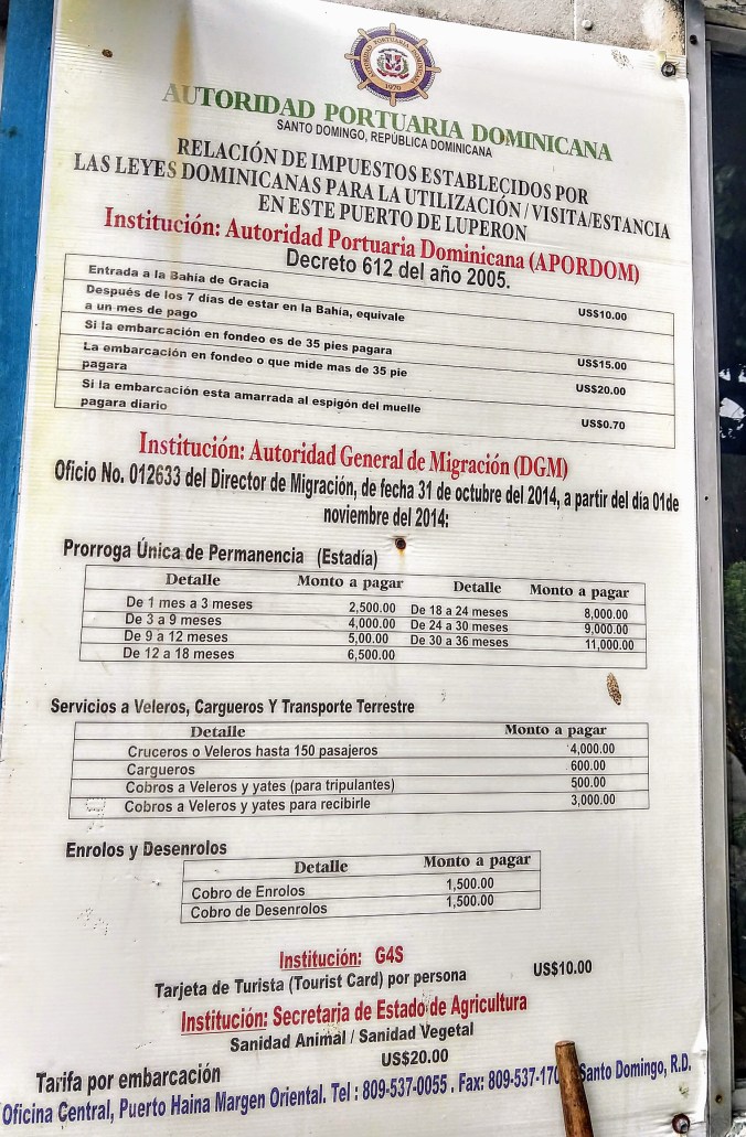 Finally, we were pretty confident we’d have a window we could safely motor across the Mona Passage, although it was unlikely we’d have enough wind to truly sail. We said our goodbyes to Marcie and Damon the night before, so we were all set to raise anchor and head out at first light. The Bay of Samana is gigantic – hours later, we could still see the finger of land to our north. But eventually, we broke free of the bay, and motor-sailed down the southeastern coast of the DR, encountering one of those crazy currents streaming about 1.5 knots against us along the way. Winds were pretty calm (Capt. Mike had done his research well) so we considered ignoring the hourglass shoal all together and just choosing a heading that lined up straight with our destination in Puerto Rico. Glad we didn’t do that! Even doing everything right, and picking a longer course to the north of the shoal, we still encountered pretty rough seas on the edge of it.