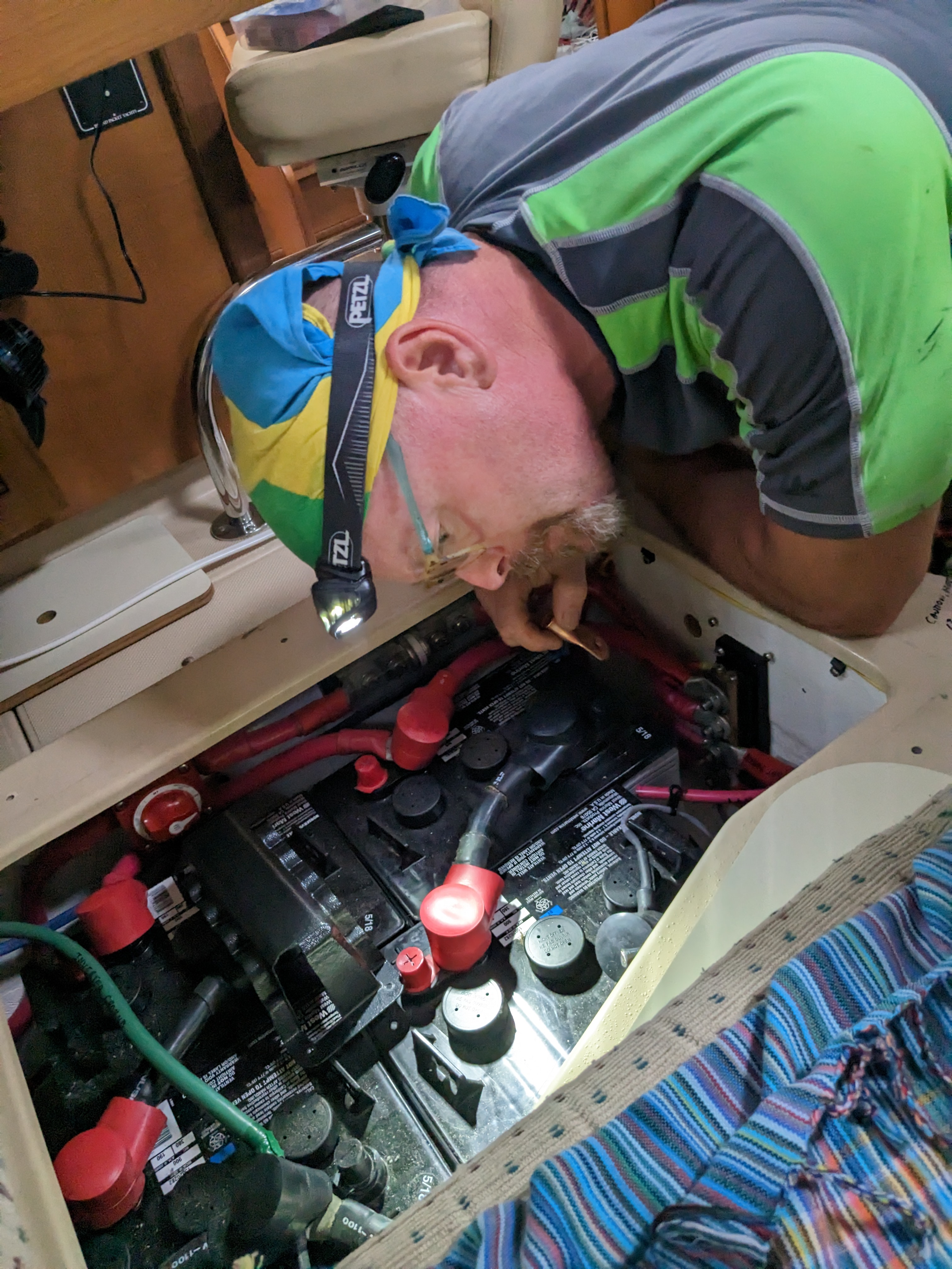 - New batteries (house battery bank, starter battery, and bow thruster battery)