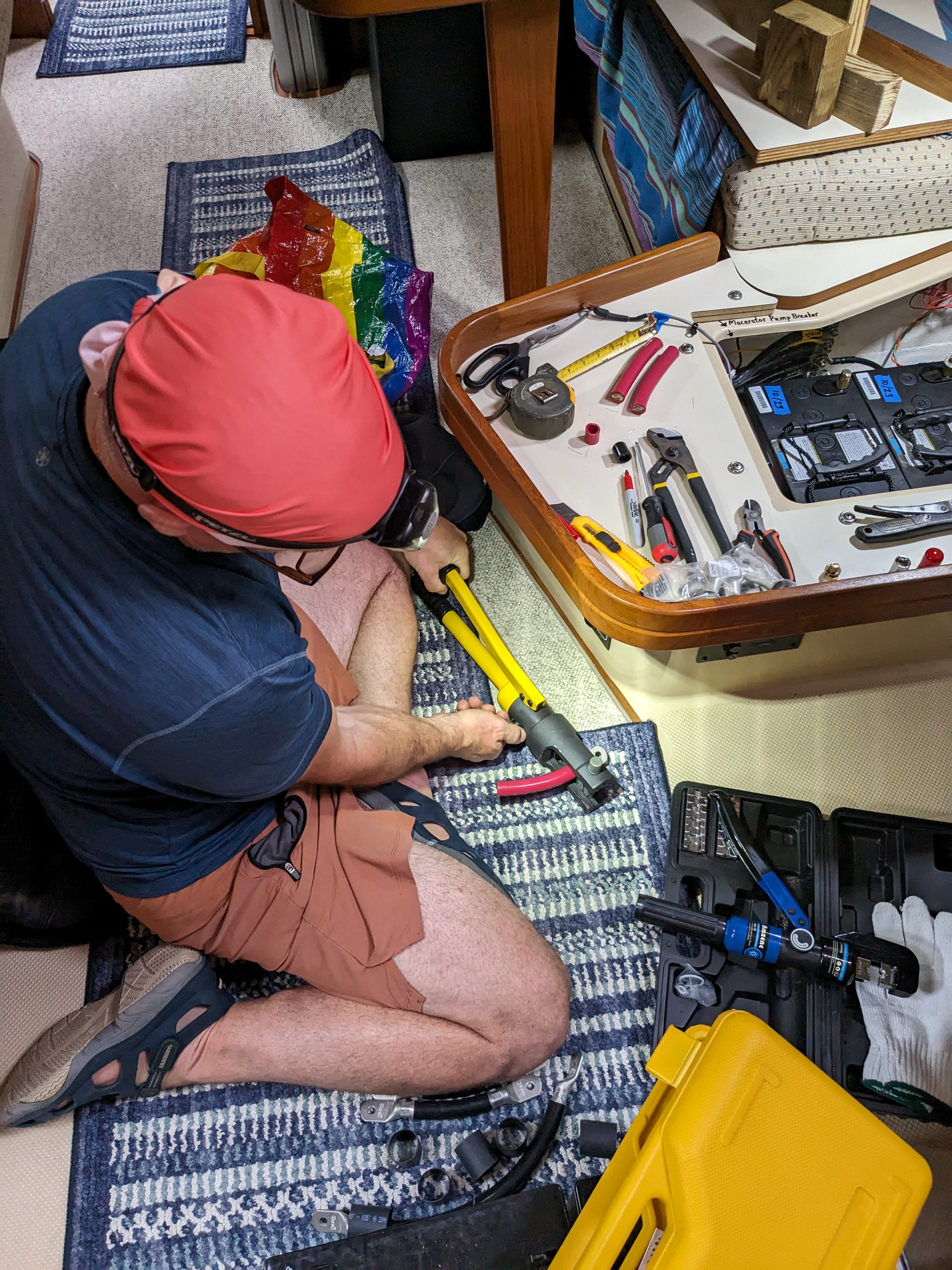 - Installed lights in the anchor locker, main cabin closet, and fixed existing light switches