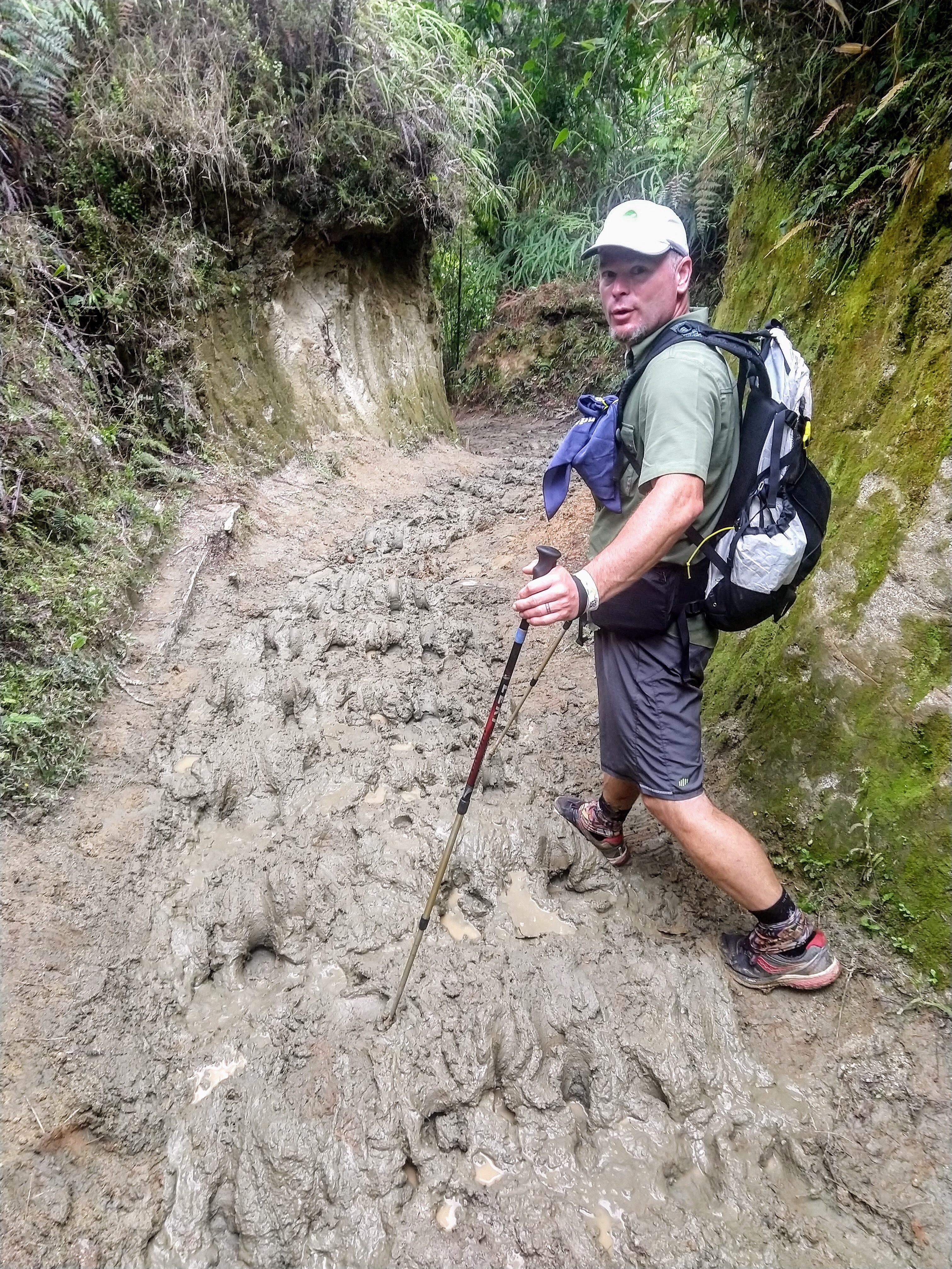 There are no switchbacks. The ups and downs are steep and slick, and your best bet is to grab the trees and vines to control the rate of your fall. This may or may not sound like fun to you, but I’ve gotta say, once you get over the fear of getting dirty, it’s a heck of a lot of challenging good time. On a later, even muddier Hash, I fell on my butt three separate times on the same long downhill stretch. Good thing there was a water tap for hosing down at the finish line of that one!